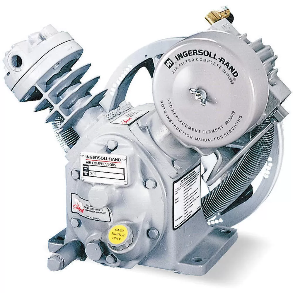 Ingersoll Rand 2340 compressor pump is used to compress air supply for use in various air-powered applications like gas cylinder filling, operating pneumatic HVAC systems or tools and filling tires in automotive service shops, machine shops, production & manufacturing lines and more. Ingersoll Rand 2340 air compressor pump combines with a vertical air cylinder & a 5 hp motor, offering continuous air compressing operation.